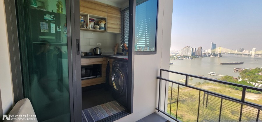 รายละเอียดทรัพย์ : ห้องชุดพักอาศัย แบบ 1 ห้องนอน พื้นที่ใช้สอยขนาด 33.36 ตารางเมตร ระเบียงมีที่นั่ง มองเห็นโค้งน้ำเจ้าพระยา และสะพานพระราม 9 ตอนกลางคืนวิวสวยมากๆ ในช่วงเทศกาลที่มีการแสดง พลุ ดอกไม้ไฟ มองเห็นจากห้องชัดเจน